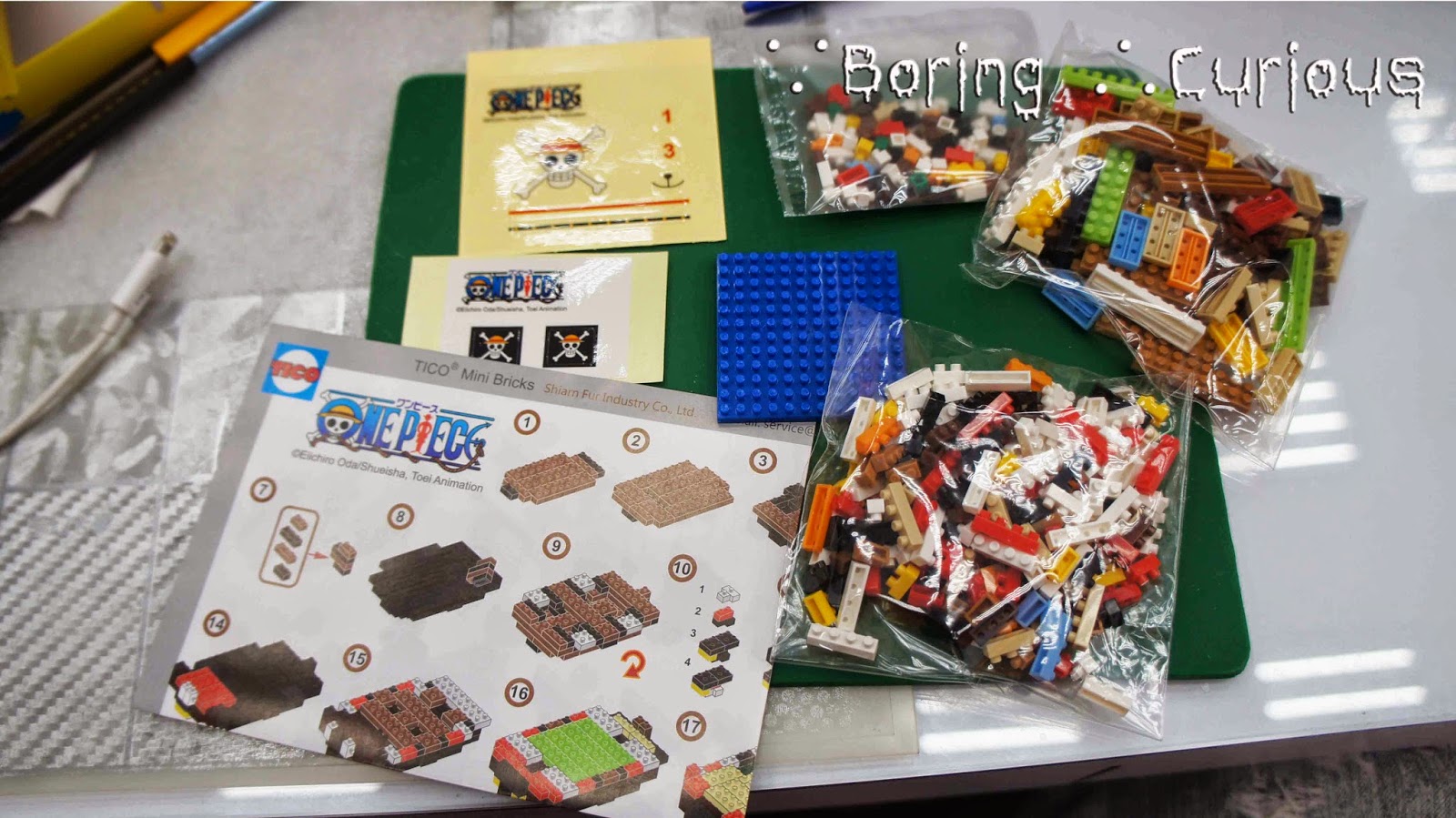 三包積木、一張組裝說明書、貼紙兩張、還有海洋(積木)